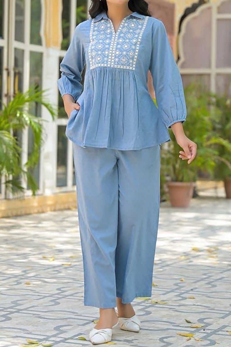 Ocean Blue Soft Fabric Co-ord Set For Women