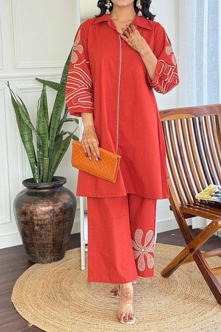Red Premium Fabric Co-ord Set For Women